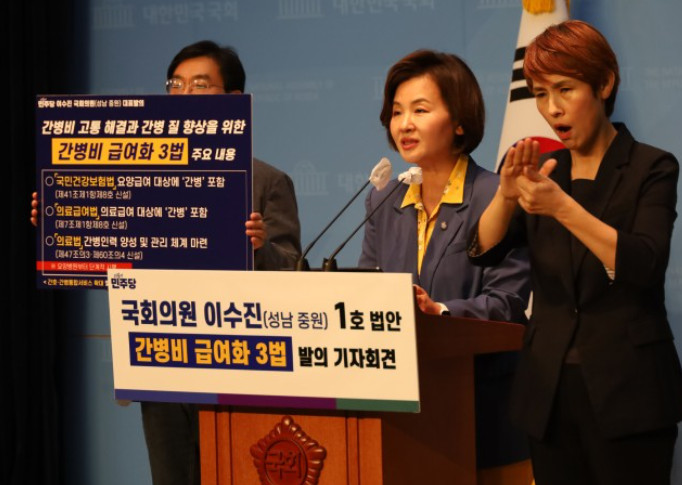 더불어민주당 이수진 의원이 대표 발의한 '간병비 급여화 3 법'이 대표적입니다.