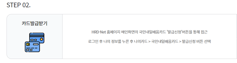 나의 정보 페이지에서 나의 카드 > 내일배움카드> 발급신청합니다.