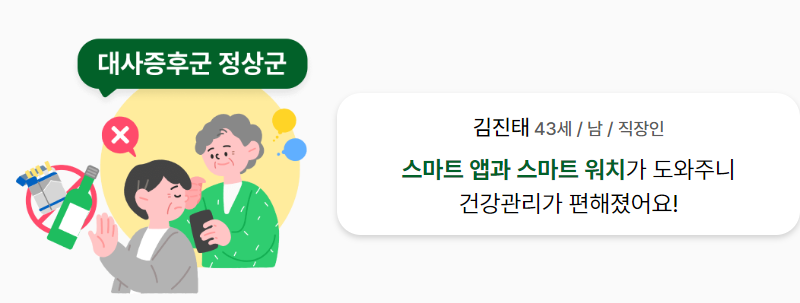 대사증후군 주의가 필요한 사람들에게 건강목표를 설정하고 식이 및 운동가이드를 제공합니다.