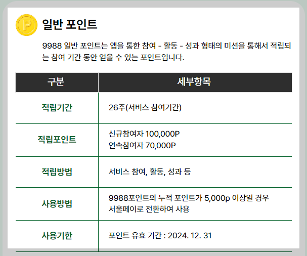서비스 참여기간은 26주이며 누적포인트가 5천 포인트 이상 되면 서울페이로 전환하여 사용가능합니다.
