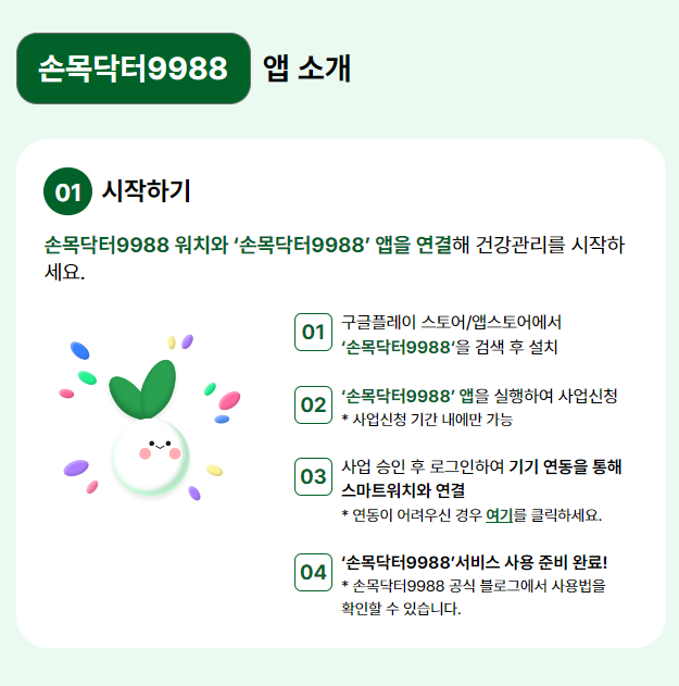 신청은 손목닥터9988 홈페이지 또는 앱에서 가능합니다.