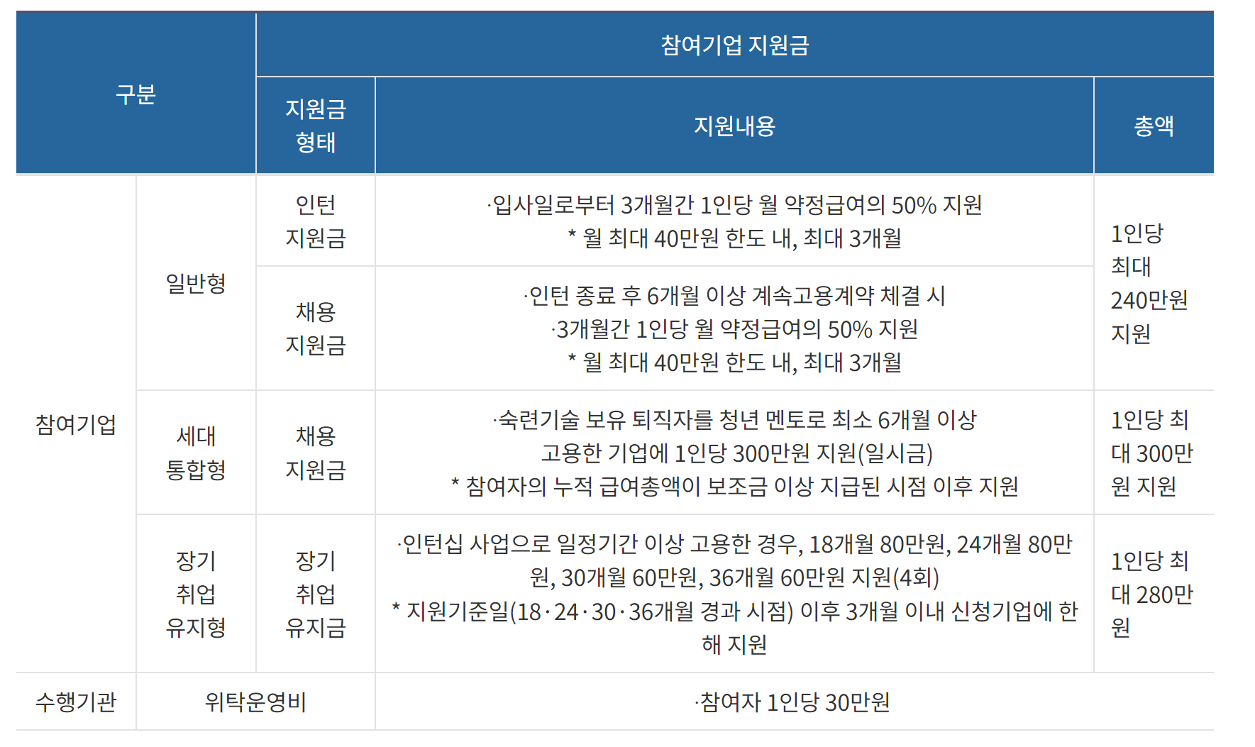 참여기업은 60세 이상을 고용할 의사가 있는4대 보험 가입 사업자 중에 근로자 보호규정을 준수하는 기업으로 참여기업에게는 참여기업지원금을 제공합니다.