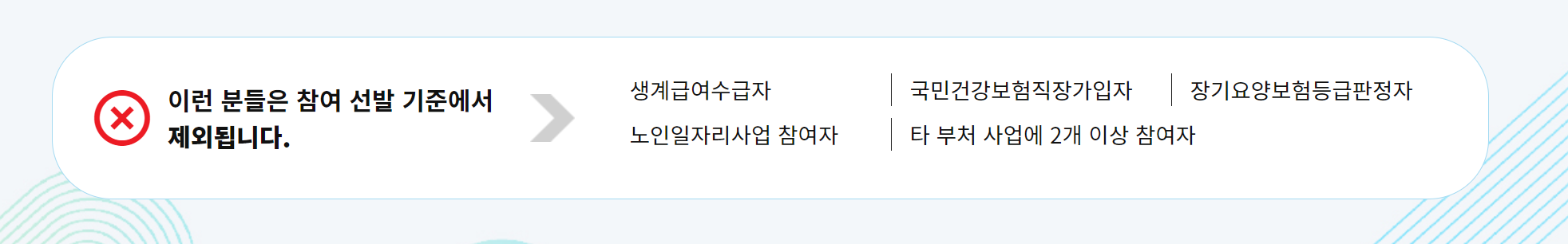 이미 노인일자리사업에 참여 중이거나 생계급여수급자 등을 제외됩니다.