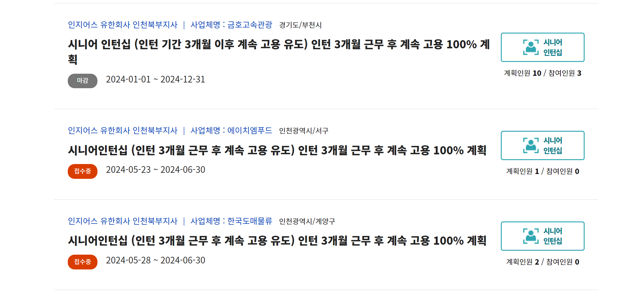 이 중 시니어인턴십 사업을 예시로 살펴보겠습니다.