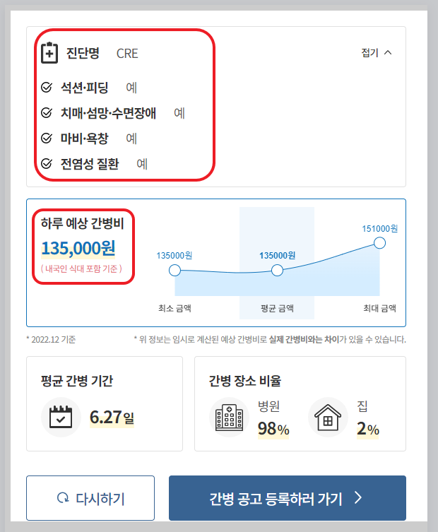 케어네이션이라는 간병인 구인구직 관련 홈페이지에서 찾아본 예상 간병비입니다.