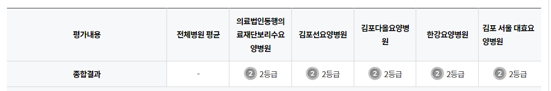 김포시에 위치한 요양병원은 모두 평가등급 2등급을 받았습니다.