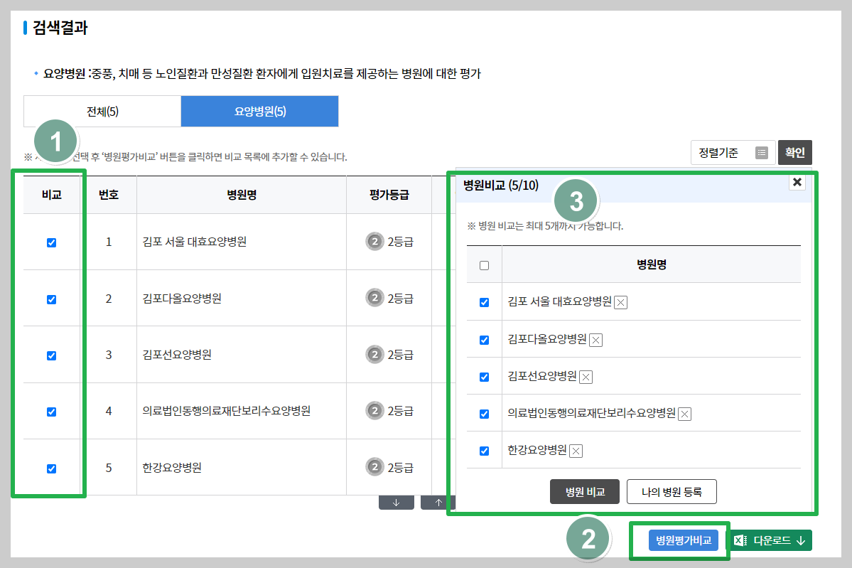 심평원 요양병원 비교