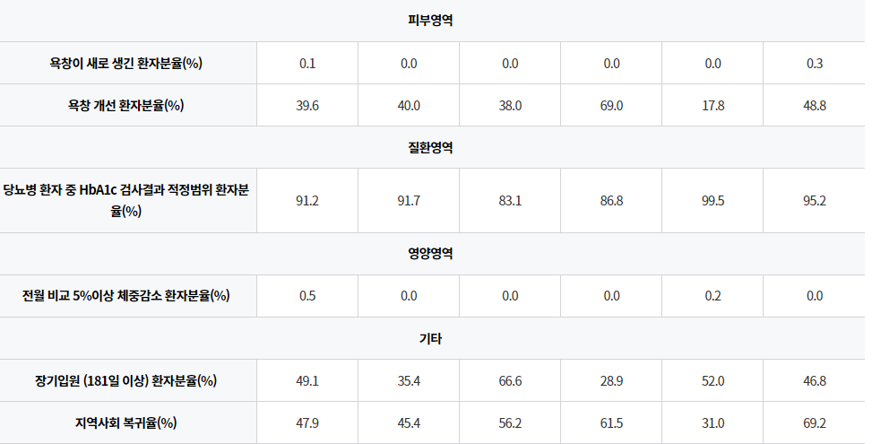 요양병원 입원 후 욕창이 새로 생긴 경우가 많은지, 욕창이 개선된 경우가 많은지를 살핍니다.
