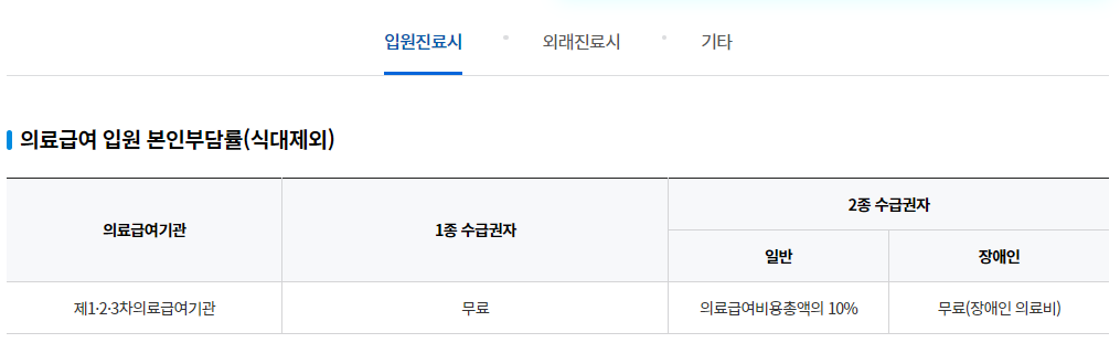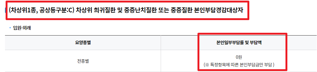 차상위 1종 및 중증질환자 본인부담금