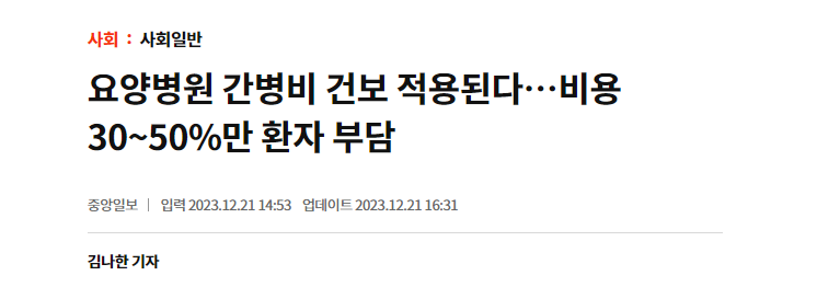 요양병원 비용 중에 간병비 부담이 가장 큰 데 건보 적용이 신속히 시행되었으면 합니다.